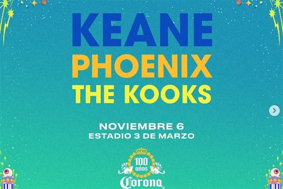 Si lo que quieres es disfrutar de un buen festival con una gran variedad de bandas y artistas internacionales, el Corona Capital Sessions es para ti. El próximo seis de noviembre se celebrará uno de los festivales más importantes a nivel nacional, con la presencia de tres increíbles bandas de renombre: Keane, Phoenix y The Kooks. La venta de boletos está disponible a través de Ticketmaster México, y se recomienda adquirirlos con anticipación por su alta demanda.