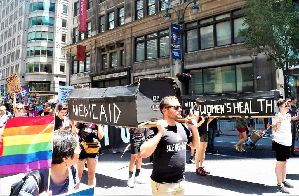 Desde que fueron detectados los primeros casos de VIH, la lucha por el acceso a tratamientos antirretrovirales ha sido una de las más presentes dentro de la comunidad homosexual en todo el mundo. El 24 de marzo de 1987 se reunió un grupo activista de 250 miembros que pertenecían al llamado “AIDS Coalition to Unleash Power”, los cuales salieron a las calles de Nueva York para protagonizar una demostración por las muertes en la intersección de Broadway y Wall Street.